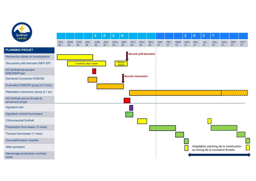 Présentation de l'état d'avancement du projet solaire et des caractéristiques de la société citoyenne SoWatt-Lescar.